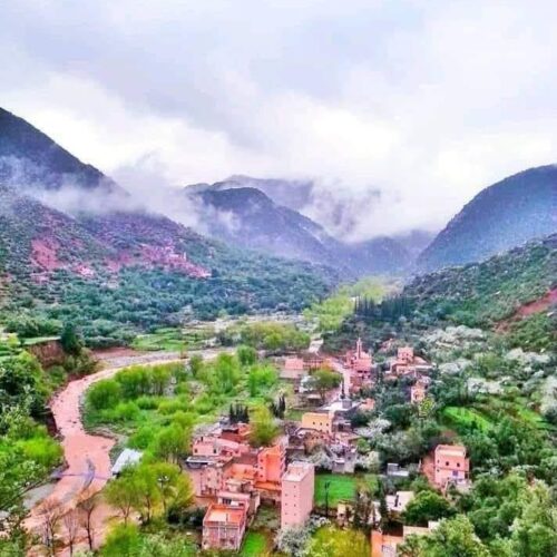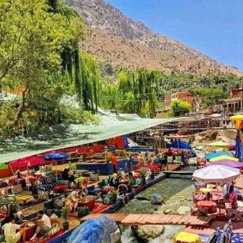 Duration: Approximately 4h30 min Itinerary Departure from Marrakech Begin your journey with a scenic drive through the Atlas Mountains, enjoying breathtaking views and traditional Berber landscapes along the way. Arrival at a Berber Village Visit a traditional Berber village, where you’ll get a glimpse of local life. Explore the village, meet the residents, and learn about their customs and traditions. Cultural Experience Participate in a cultural activity, such as a cooking class or a handicraft workshop, where you can learn about Berber crafts and cuisine. Lunch with a Berber Family Enjoy a traditional Moroccan meal prepared by a local family, experiencing authentic flavors and warm hospitality. Visit to Waterfalls After lunch, head to a nearby waterfall, such as the Ouzoud Waterfalls or another beautiful site. Take in the stunning views and enjoy a leisurely hike along the trails. Hiking and Relaxation Spend time hiking around the waterfalls, capturing beautiful photos and enjoying the serene atmosphere. You may also have the option to take a boat ride (if available). Free Time to Explore Relax by the water, enjoy the scenery, or explore more of the surrounding area. Look out for local wildlife, such as monkeys, that inhabit the region. Return to Marrakech After a fulfilling day of culture and nature, return to Marrakech, reflecting on the unique experiences and sights of the day.