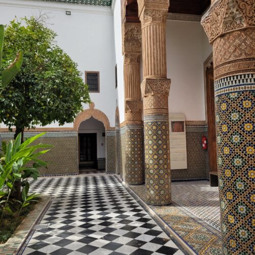 Meeting point : Hotel, Riad or Koutoubia. Itinerary: Welcome and Introduction — Meet at the hotel, riad or koutoubia mosque. — Presentation of the itinerary and places to visit. Medina of Marrakech — Walk through the narrow streets of the medina. — Discover emblematic monuments such as the Koutoubia with his pac, Jemaa el-Fnaa square and ben youssef medrassa. — Explanations on the history and architecture of the city. The colorful souks from 11th century. — Exploration of the lively souks where artisans and local products are found. — Interaction with artisans and discovery of their know-how. — Tasting of Moroccan specialties such as olives, spices by visiting the traditional Herbery. Garden or Museum — Visit an emblematic garden such as the secret garden or Majorelle Garden. — Option to visit a local museum, such as the Marrakech Museum. Return and Conclusion — Return to the meeting point. — Exchange of impressions and recommendations to continue your exploration of Marrakech.